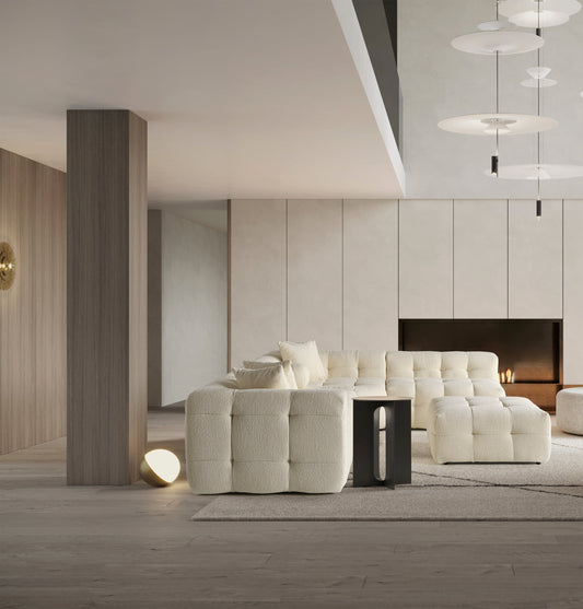 Amsterdam Ecksofa – 290 × 275 cm – Cremefarbene Bouclé-Luxusausführung