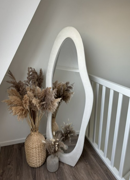 Bogenförmiger Standspiegel mit Bouclé-Stoff – 70 × 170 cm
