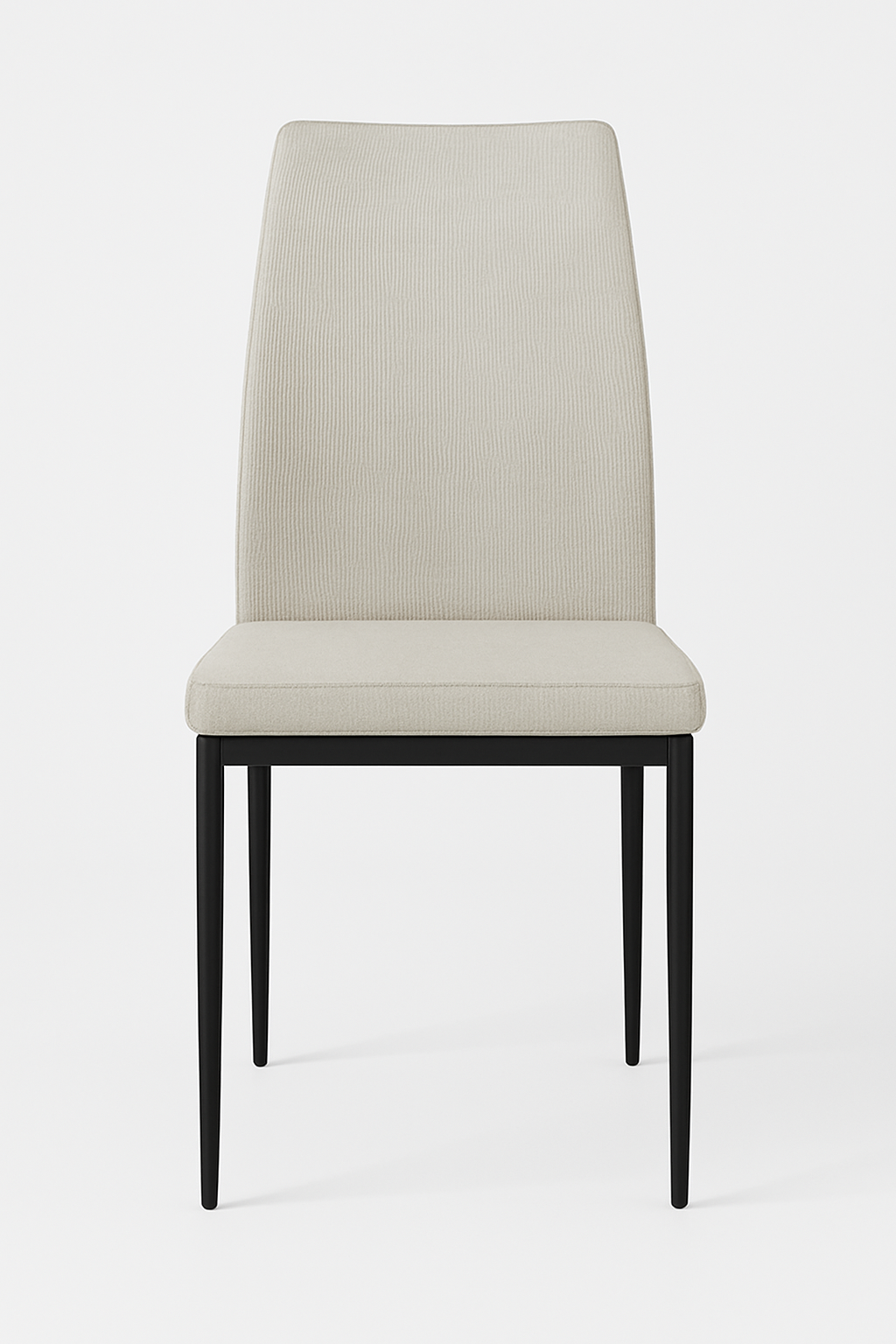 Schlank, komfortabel und vielseitig – dieser minimalistische Esszimmerstuhl fügt sich mühelos in jedes moderne Interieur ein. Die hellbeige Polsterung fühlt sich angenehm weich an und verfügt über ein dezentes Rippmuster für eine feine zusätzliche Textur. Das schlanke schwarze Metallgestell sorgt für eine elegante Silhouette mit industriellem Flair.